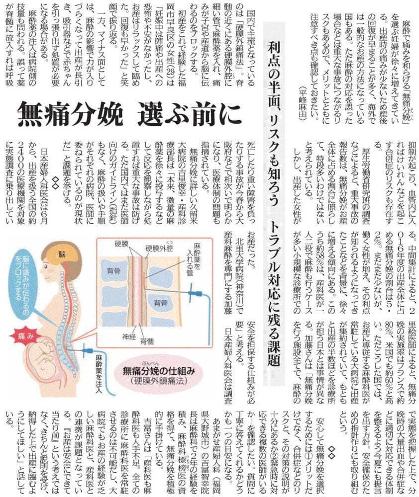 本日の西日本新聞にて、無痛分娩の情報が掲載されました。