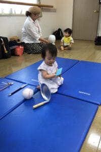 興味津々で自分の足を見つめる子も…