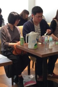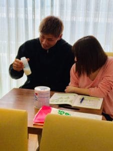 ミルク作り体験では実際に粉ミルクをお湯に溶いて作ります。