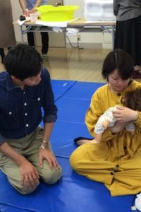 抱き方やオムツの替え方も実際にお人形を使って実践します。