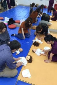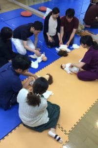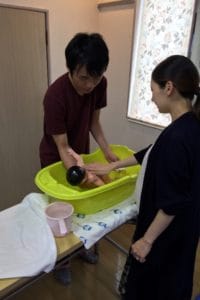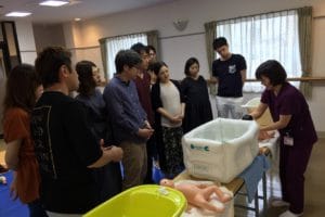 オムツ替え、抱っこの練習、と盛り沢山です。