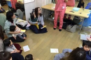 足形をとり、栄養士さんからの離乳食の話を聞きいていただいて、最後はいつもの読み聞かせです。