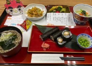 夕食は、鬼のお面と豆、恵方巻きと節分ソバで目でも舌でも楽しんで頂けるお膳になっています。