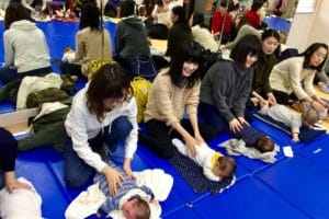 それから保育士から向きぐせ解消のマッサージを教えてもらいました。